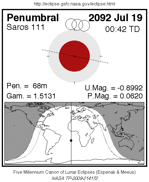 Espenak, Fred. “Penumbral 2092 Jul 19.” NASA Eclipse Web Site > Lunar Eclipses > Lunar Eclipse Catalogs: Catalog of Lunar Eclipse Saros Series > Lunar Eclipses of Saros Series 1 to 180: Summary of Saros Series 101 to 125 > 71 36 2092 Jul 19.